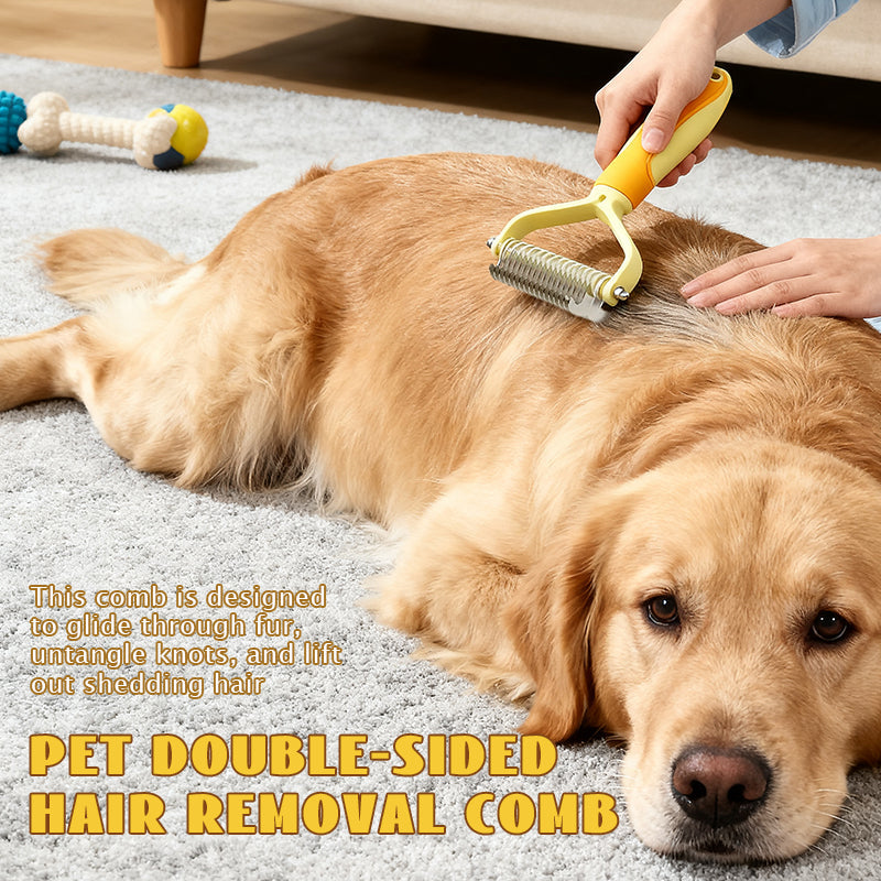 🐾 Oboustranný hřeben na odstraňování chlupů – hladká srst, spokojení mazlíčci